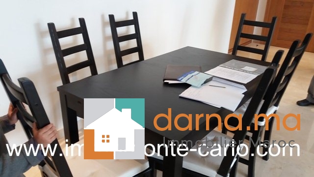A louer à Rabat Souissi appartement de luxe bien meublé,  beaux volumes aux grandes baies vitrées superbe vue sur   le jardin, dans une construction haut de gamme, bénéficiant de prestations hauts de gamme, vue sur l’orangerie et bien structuré autour d’espaces de vie de qualité exceptionnelle et réalisés avec des matériaux prestigieux dans une résidence sécurisé avec système de surveillance et gardiennage.  Climatisation réversible dans toutes les pièces et 2 places au garage, situé au 3ème étage dans un immeuble avec ascenseur. Se compose de : grande réception avec salle d’eau des invités et grande terrasse, chambre parentale avec dressing, salle de bain et terrasse, 2 chambres, 2ème salle de bain, cuisine équipée,… Pour plus d’informations ou visite n’hésitez pas de contacter notre agence immobilière Immo Monte-Carlo au N° de tél: +212661464037/ +212661212547ou Tél/Fax: +212537755043 ou par E-mail : immomontecarlo@Cette adresse e-mail est protégée contre les robots spammeurs. Vous devez activer le JavaScript pour la visualiser. ou visitez notre site www.immomonte-carlo.com ou  rendez-vous au 15 . Av, Al Abtal N°4, Agdal RABAT MAROC.