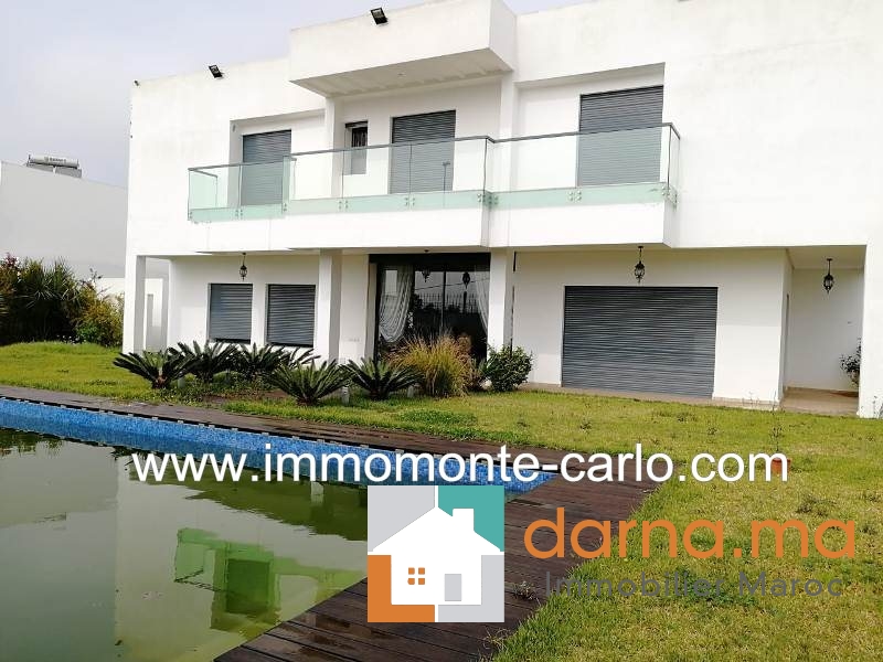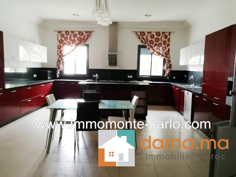 À louer villa meublée à Rabat au quartier Souissi.  Dans un environnement privilégié, villa bien meublée avec piscine privée jardin chauffage et climatisations. Idéalement située dans un quartier résidentiel,  bénéficiant de prestations haut de gamme, villa  lumineuse  beaux volumes aux grandes baies vitrées sans aucune vis à vis et superbe vue sur le jardin, piscine. Mobiliers contemporains et de grandes qualités, située sur une rue tranquille Villa construite sur 2 niveaux, composée