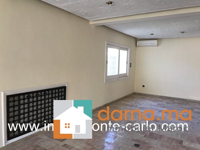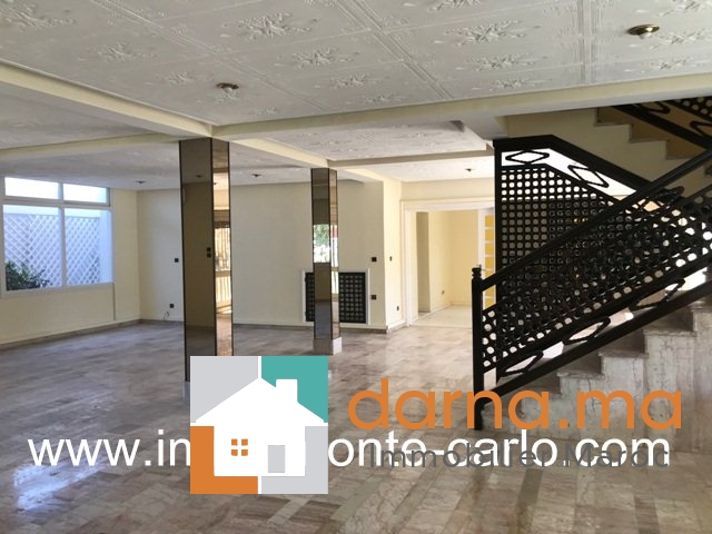 Location villa bureau au quartier Souissi Rabat, Bien situé dans un endroit calme et proche de toutes les commodités, avec climatisation réversible et chauffage central,  comprenant grande réception, salle de réunion, une grande salle,2 salons, des salles d’eau, plusieurs bureaux, et des annexes à l’extérieur, grand garage pour plusieurs voitures, jardin avec puits, logement de gardien,…….Pour plus d’informations ou visite n’hésitez pas de contacter notre agence immobilière Immo Monte-Carlo au N° de tél: +212661464037/ +212661212547ou Tél/Fax: +212537755043 ou par E-mail : Cette adresse e-mail est protégée contre les robots spammeurs. Vous devez activer le JavaScript pour la visualiser. ou visitez notre site www.immomonte-carlo.com ou  rendez-vous au 15. Av, Al Abtal N°4,  Agdal RABAT MAROC.