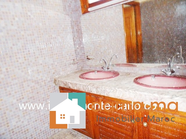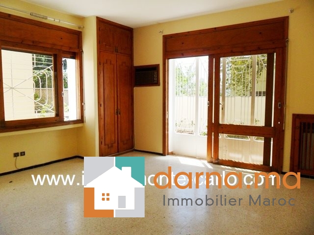 Villa avec chauffage central  à louer à Rabat Souissi, villa très propre, moderne ensoleillée sécurisée et calme, dans un quartier résidentiel de Souissi,et proche de toute commodités,  grand garage , comprenant  une réception lumineuse avec 3 grandes baies vitrées avec vue sur le jardin et avec un joli patio et  une grande terrasse : se compose de double salons avec un coin cheminé, un beau séjour donnant sur une terrasse qui donne sur le jardin, une chambre parentale avec dressing et terrasse, 2chambres avec des placards, 2 salles de bain et des balcons,  une cuisine, une buanderie, un cour,  débarras, logement de personnel… Pour plus d’informations ou visite n’hésitez pas de contacter notre agence immobilière Immo Monte-Carlo au N° de tél: +212661464037 / +212661212547 ou Tél/Fax: +212537755043 ou par E-mail : Cette adresse e-mail est protégée contre les robots spammeurs. Vous devez activer le JavaScript pour la visualiser. ou visitez notre site www.immomonte-carlo.com ou rendez-vous au 15. Av, Al Abtal N°4, Agdal RABAT MAROC.